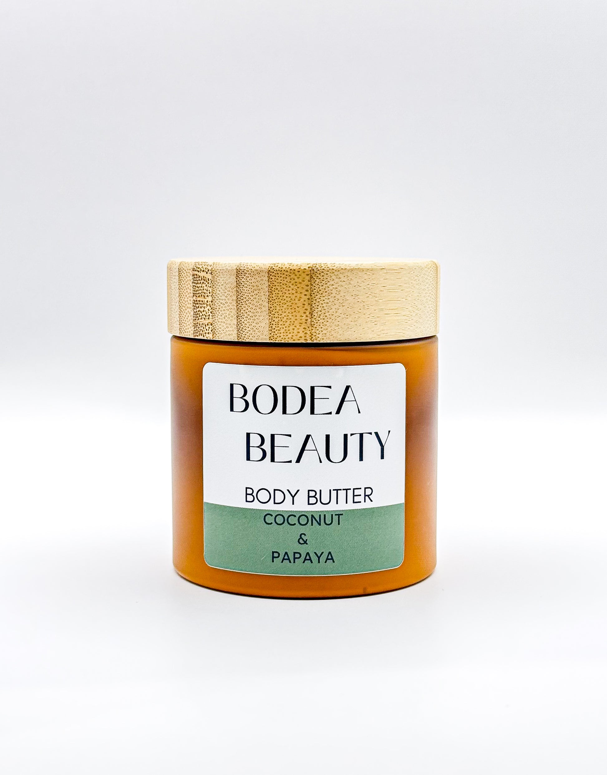 Please be advised that, due to the natural formulation of Bodea Beauty Body Butters, the product may soften in warm temperatures. To maintain its texture and quality, we recommend storing it in a cool, dry place.